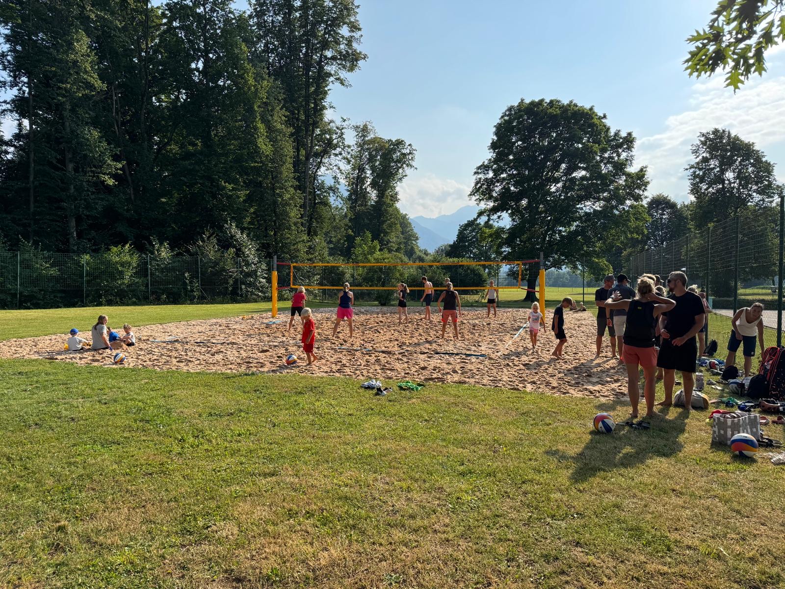Während des Frühjahrs 2025 wurde der Volleyballplatz am Freibad erneuert und ein weiterer Zugang von dem Sportgelände des SV Nußdorf ermöglicht. Eine Gruppe junger und hochmotivierter Volleyballspieler haben sich mit drei Trainern zusammengetan und nutzen das Volleyballfeld nun jeden Freitag bei schönem Wetter. Sollte es mal regnerisch sein, wechseln sie zum Techniktraining in die Turnhalle. Ein Aufschlag in der Luft, Baggern und Pritschen, ein Netzroller oder einfach nur Gaudi beim Sport im Sand haben, beim Volleyballtraining ist alles mit dabei! Bei Interesse am Volleyballtraining kann man sich an die Abteilung Breitensport/Turnen des SV Nußdorf wenden oder zu den Trainingseinheiten zum Volleyballfeld kommen.